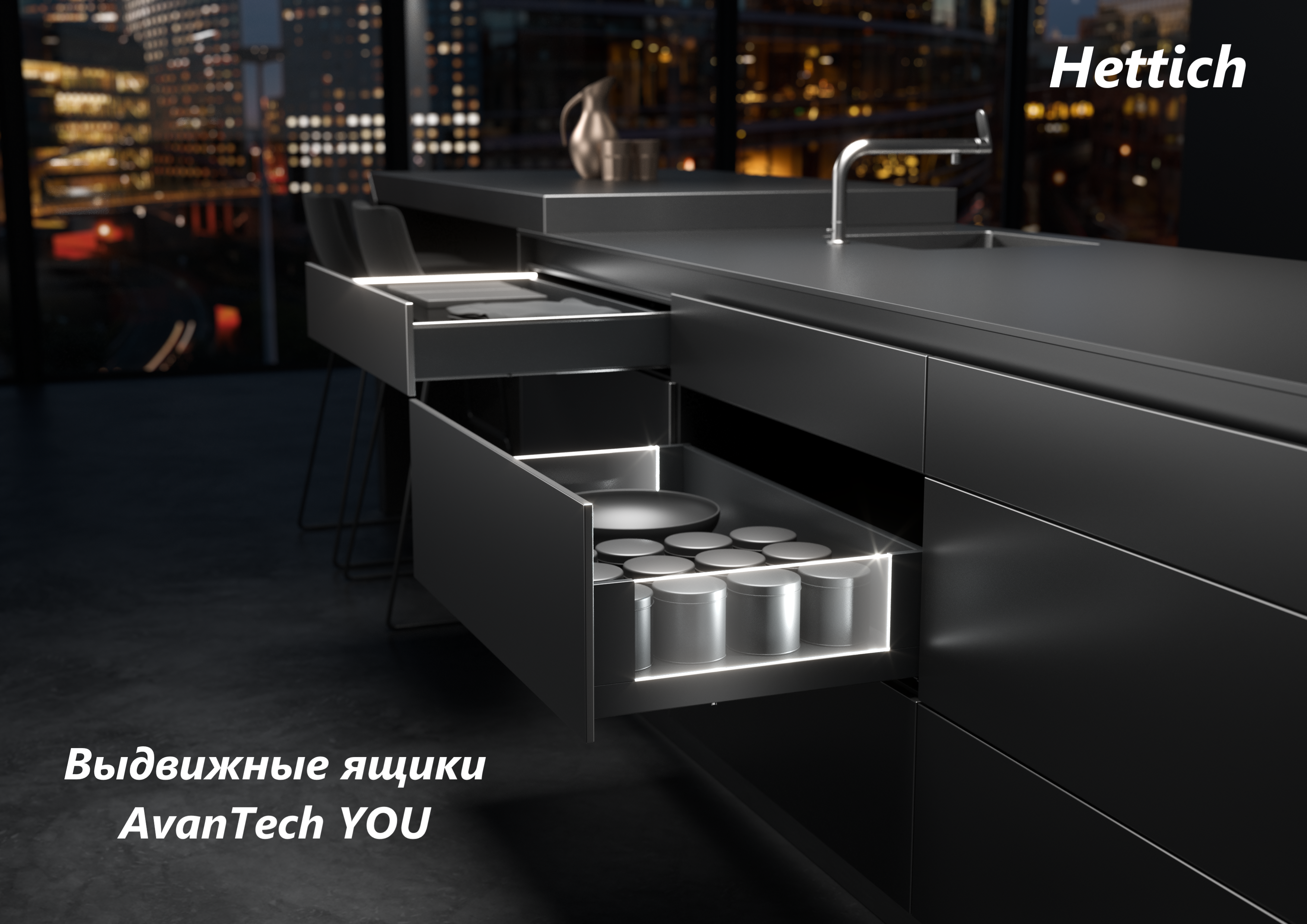 AvanTech YOU - самое стильное решения для ящиков, которое сейчас есть у Hettich. Это гибкий дизайн, который учитывает стиль жизни и желания покупателя.